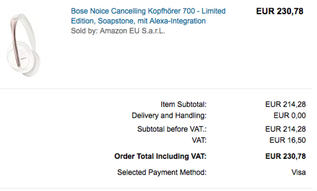 Der Preis auf Amazon is 248.57€, mit Schweizer VAT es ist aber nur 230,78€ mit kostenloser Lieferung, circa 248 CHF