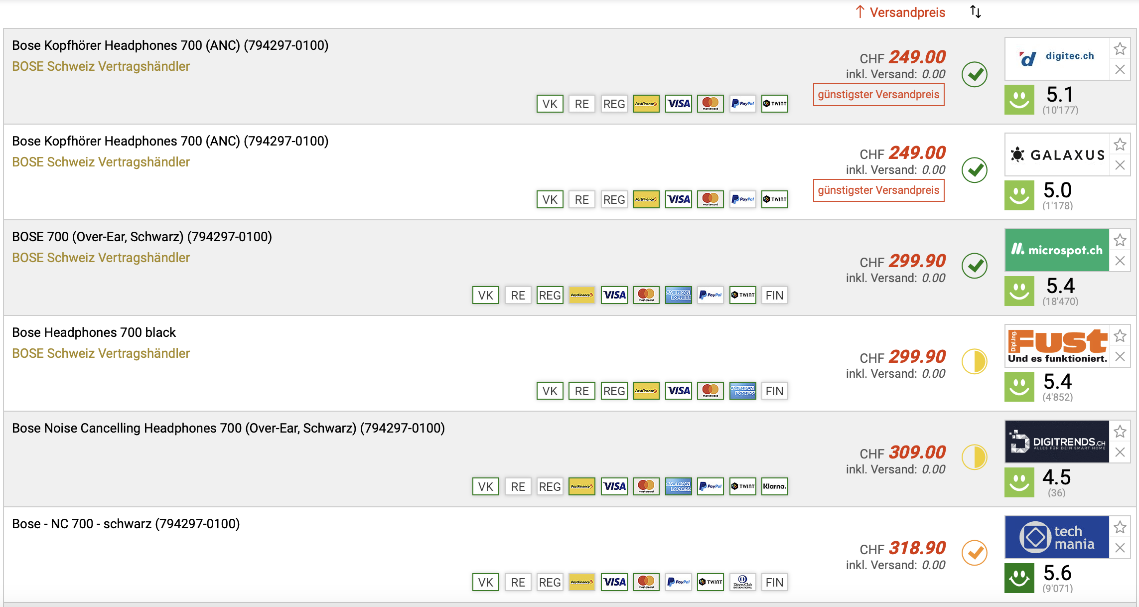 Bei Digitec gibt es das Top Modell BOSE Headphones 700 mit Active Noise Cancelling für den neuen Bestpreis von CHF 249.- als Tagesangebot. Von anfänglich 400 Stück ist noch rund die Hälfte verfügbar.