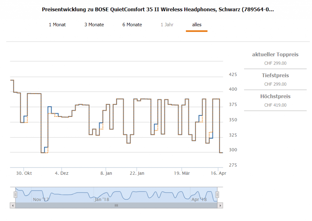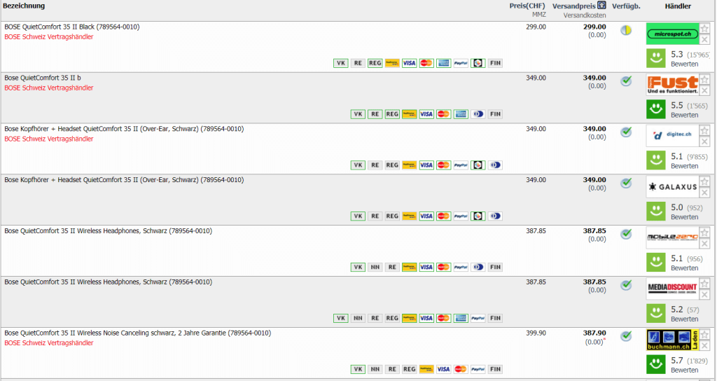 Da der letzte Deal zu den Bose QuietComfort 35 wirless II so gut ankam, bringen wir ihn noch ein Mal. Die Kopfhörer gab’s bereits einmal zu diesem Preis, für ganz kurz sogar noch günstiger, was aber ein Preisfehler war. Der zweitbeste Preis in der Schweiz liegt bei CHF 349.- Bei microspot erhält man die Kopfhörer mit dem Gutscheincode HFNEU7 für CHF 289.- Zu diesem Preis gibt’s beide Farben: Silver und Black.