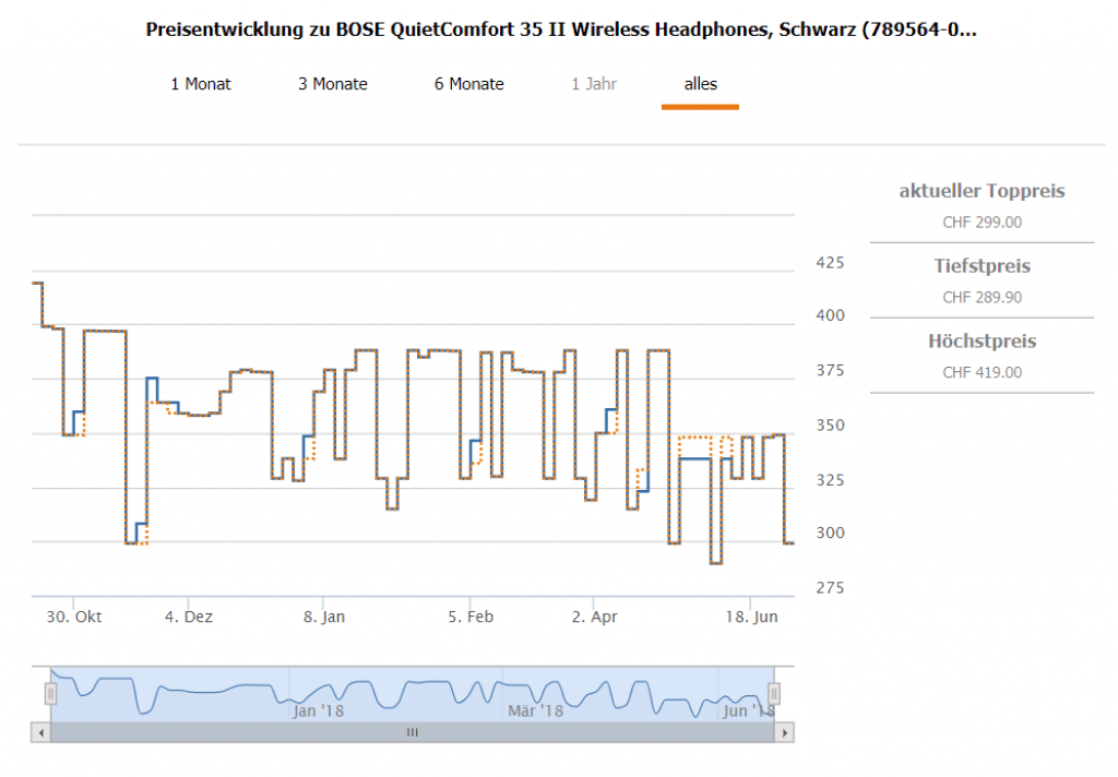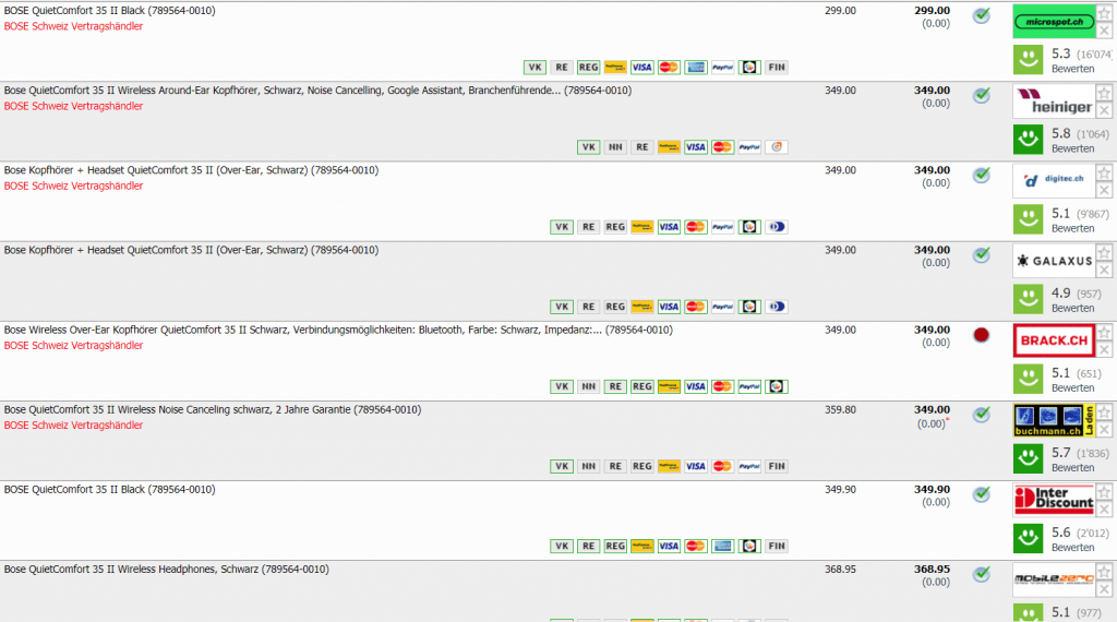Wieder einmal gibt’s einen super Preis zum BOSE QuietComfort 35 wireless II Kopfhörer. Mit dem Gutscheincode HFWMSP20 bezahlt man nur CHF 279.- Der zweitbeste Preis in der Schweiz beträgt CHF 349.- Nur ein Mal - ein Preisfehler - gab’s diesen Kopfhörer in der Schweiz bisher günstiger.