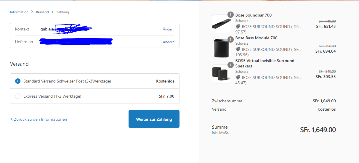 Bei qualityproducts.ch gibt es momentan die Bose Soundbar 700 mit Subwoofer und Rear Speakern im Bundle für CHF 1649.-, sowohl in Schwarz als auch in Weiss. Man muss nur die Produktseite aufrufen und dann ein wenig runter scrollen, dann wird einem schon das Bundle vorgeschlagen.