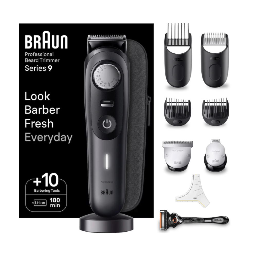 Der Braun Beard Trimmer Series 9 BT9421 bietet höchste Präzision für ein gleichmässiges Styling. Mit scharfer Pro-Klinge und AutoSense-Technologie passt er sich jedem Bart an. Ergonomisch, leistungsstark und mit langlebigem Akku – ideal für Zuhause und unterwegs. Abwaschbare Klingen sorgen für eine einfache Reinigung.