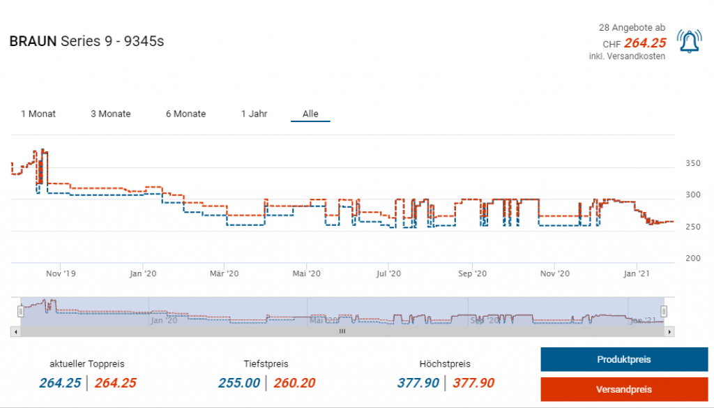 Bei microspot und nettoshop gibts derzeit den Rasierer Braun Series 9 9345s zum Preis von knapp 264 Franken. Allerdings kann man bis zum 31.1. noch den 20 Franken Bon von nettoshop anwenden um 20 Franken zu sparen. Desweiteren läuft derzeit eine 40 Franken Cashback-Aktion, die sich kombinieren lässt. Wenn man beide Rabatte zusammenrechnet kommt man auf einen Endpreis von CHF 204.65 anstatt CHF 224.65 bei microspot.