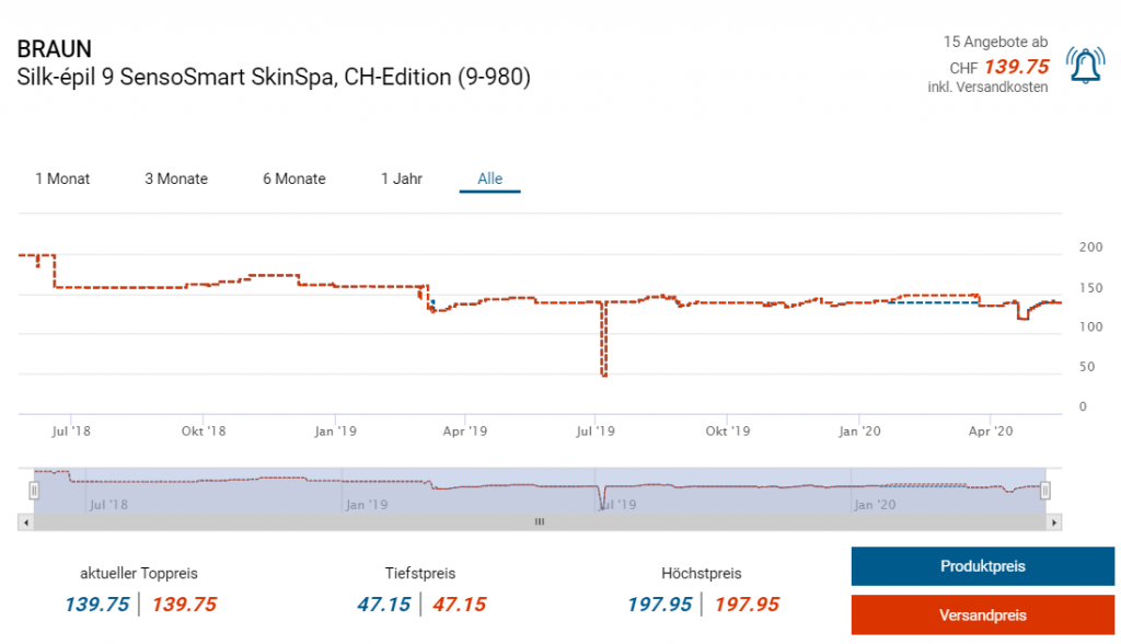 Bei nettoshop gibts derzeit den Epilierer für Damen zum guten Preis. Auf den Dealpreis kommt ihr, indem ihr den 15 Franken Gutschein aus dem Gutscheinfeld einlöst. Laut toppreise ist dies zwar kein Allzeitbestpreis, mit der Cashback-Aktion ergibt sich aber ein ganz guter Preis.