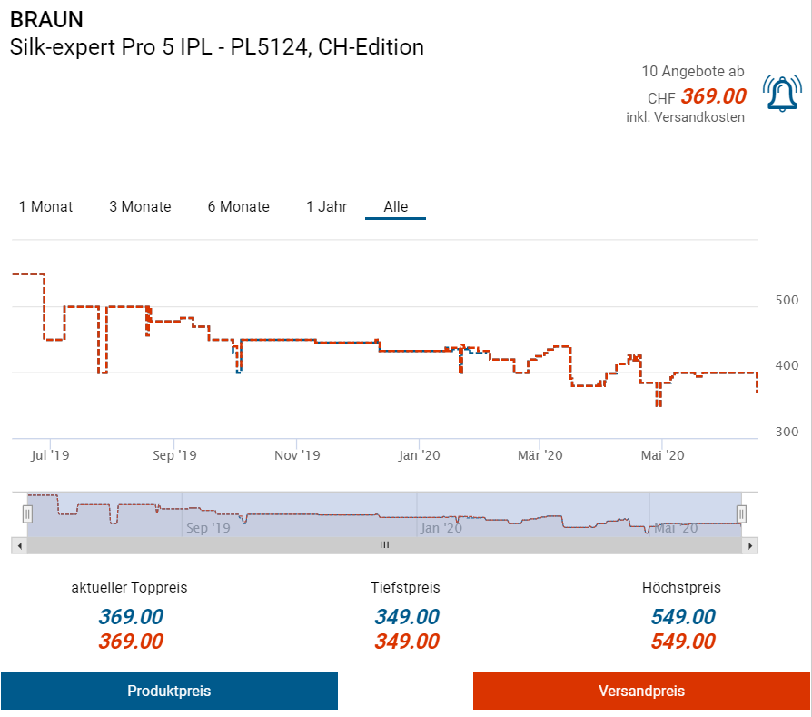 Bei nettoshop gibts derzeit das IPL Silk-expert Pro 5 CH-Edition in Aktion. Mit dem 20 Franken Gutschein ab einem Mindestbestellwert von 200 Franken kommt man auf 349 Franken. Noch dazu kommt, dass derzeit eine Cashback-Aktion im Gange ist, wo man 40 Franken zurück bekommt, wenn man sich auf dieser Aktionsseite registriert. Die Aktion läuft noch bis zum 30.6.