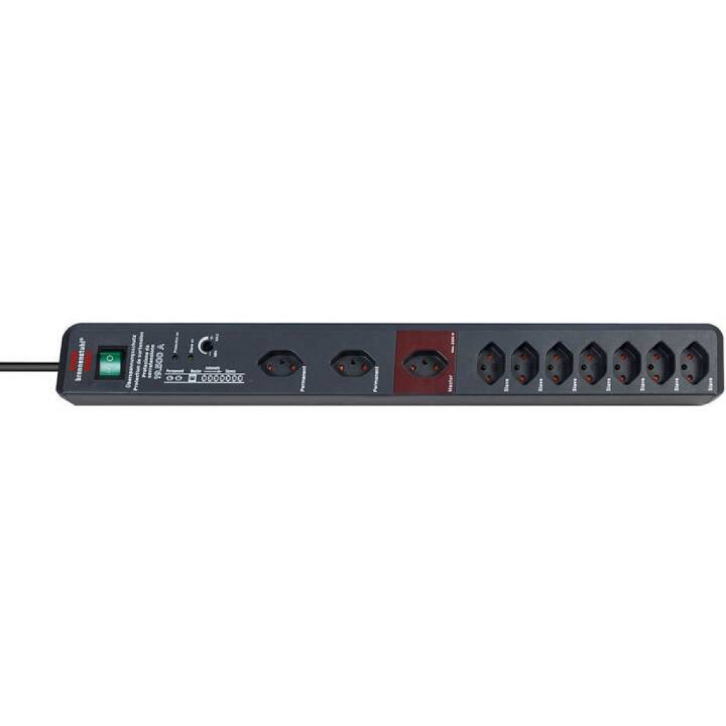 Schützt wertvolle Geräte vor Überspannungen mit einem max. Ableitstrom bis zu 19.500 A. Mit dem Ein/Aus Schalter des Gerätes, welches in der Master-Steckdose eingesteckt ist, können alle Geräte in den Slave-Steckdosen automatisch mit ein- und ausgeschaltet werden. Hoher Komfort durch 1 Master- (2300 W) und 7 Slave-Steckdosen. Mit 2 Permanent-Steckdosen (2300 W) für ständigen Betrieb. Einstellbare Schaltschwelle (ca. 8 bis 80 W). Je eine Funktionskontroll-Leuchte für Überspannungsschutz und Slave-Steckdosen. Sicherheitsschalter beleuchtet, zweipolig ein-/ausschaltbar. Steckdosen mit Kinderschutz in praktischer 90°