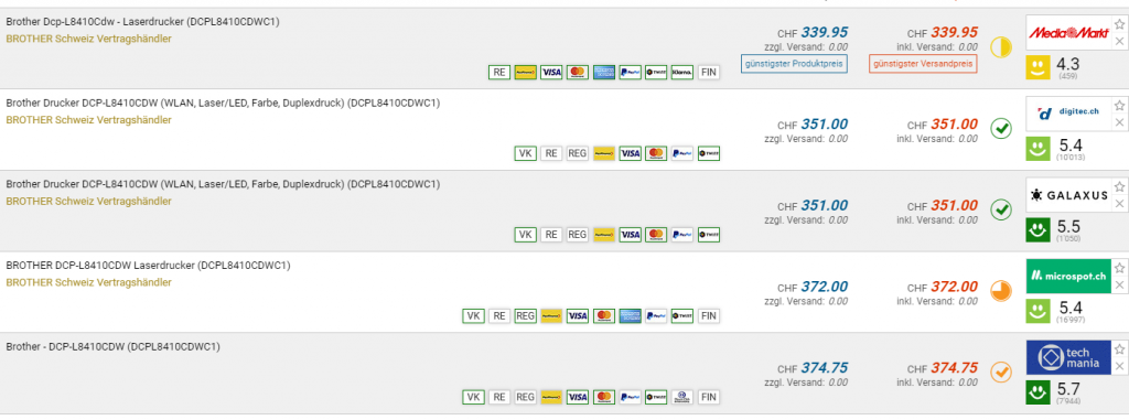 Der MFC-L8690CDW kostet bei freecall24.ch 377.99 CHF abzüglich 150 CHF Cashback, also 227.99.
