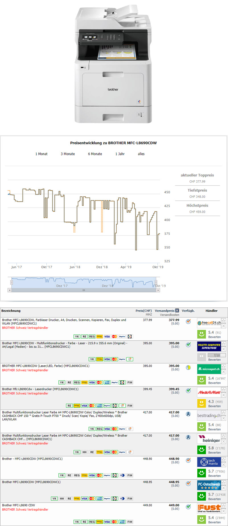 Bei Digitec gibt es im Tagesangebot den Brother MFC-L8690CDW (WLAN, Laser/LED, Farbe, Duplexdruck) zum Tiefstpreis von CHF 329.- plus CHF 150.- Cashback und einen gratis BROTHER P-Touch PT-P700 dazu.