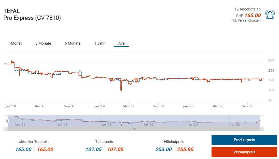 Bei nettoshop und mit kleinem Aufpreis auch bei Amazon gibts derzeit die Bügelstation GV7810 Pro Express von Tefal zum Aktionspreis von 139 Franken (durch den 20 Franken Bon) resp. ca. 146 Franken. Laut toppreise liegen die zweittiefsten Preise sonst bei 165 Franken (digitec-galaxus).