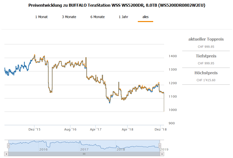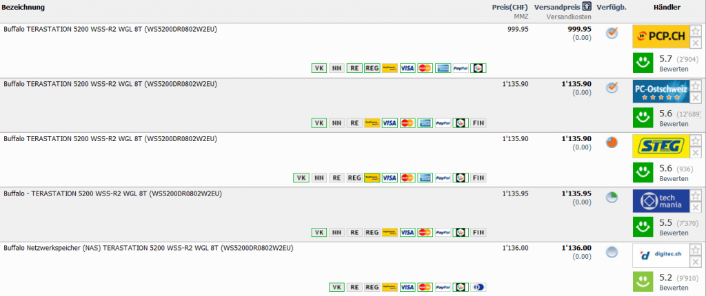 Bei PCP gibt es aktuell die BUFFALO TeraStation WSS WS5200DR, 8.0TB für 999.95 CHF.