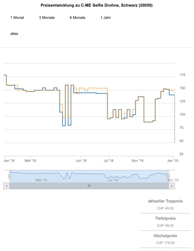 Bei digitec gibt es gerade wenige Stück der C-ME Selfie Drohne in Schwarz bzw. Rot für je 49.- CHF.