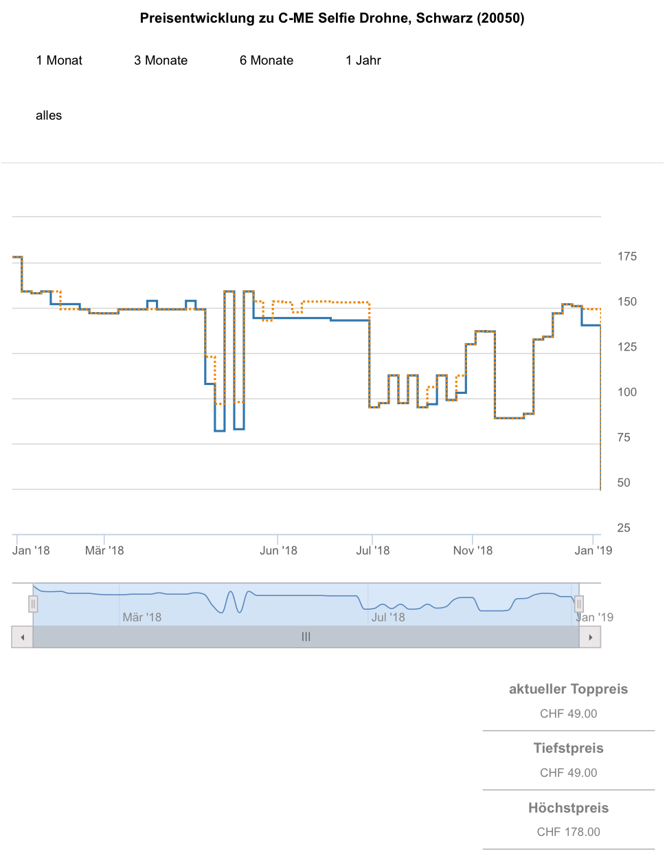 Gemäss toppreise war der bestprice bislang bei 89.- CHF, der zweitbeste Preis liegt aktuell bei 146.20 CHF.