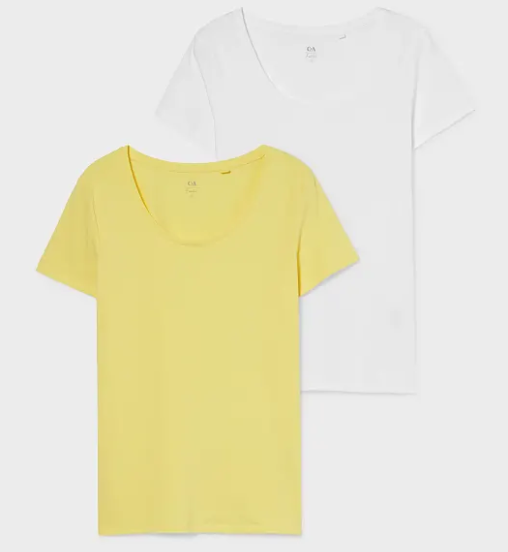 Auch ein attraktives Angebot ist dieser 2er Pack mit einem gelben und weissen T-Shirt aus Bio-Baumwolle für CHF 7.95 plus CHF 5.90 Versand. Das Set ist noch in allen Grössen XS-XL erhältlich.