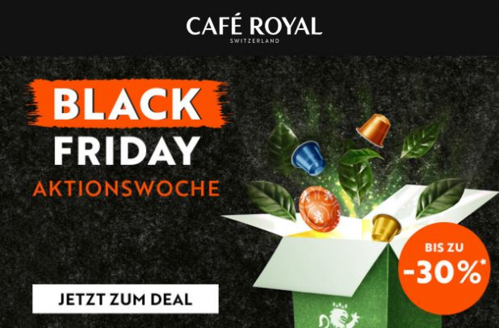 30 % Rabatt auf Nespresso®-kompatible Kapseln, Bohnen und Zubehör sowie -22 % auf kompatible Pads für Nespresso Professional. Diese Aktion ist gültig vom 21.–24.11.22. Ohne Mindestbestellwert!