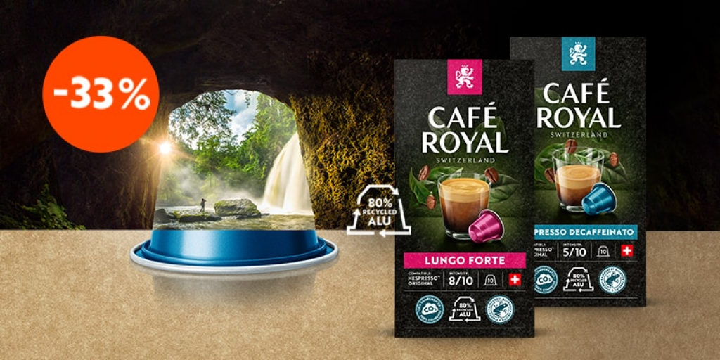 Cafe Royal bietet aktuell 33% Rabatt auf alle Nespresso kompatiblen Kapseln an.
