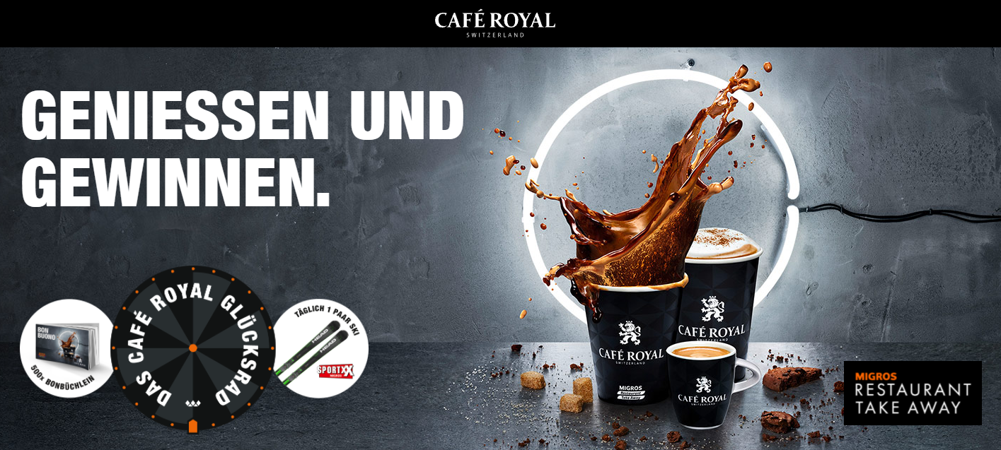 Auf der cafe royal Webseite gibts aktuell ein Gewinnspiel wo man täglich ein Mal einen von über 500 tollen Preisen gewinnen kann.