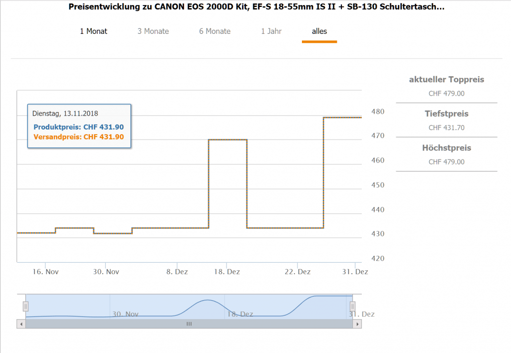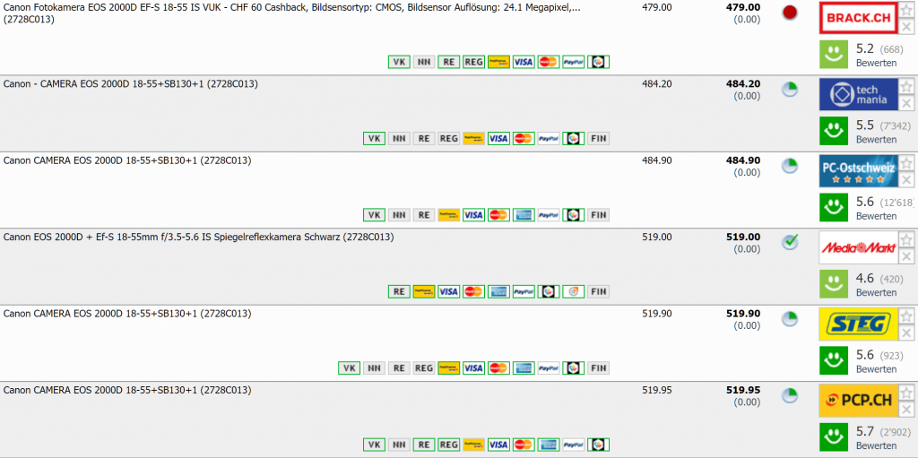 Vergleichspreis liegt bei CHF 479.- Bestpreis war bei CHF 433.-