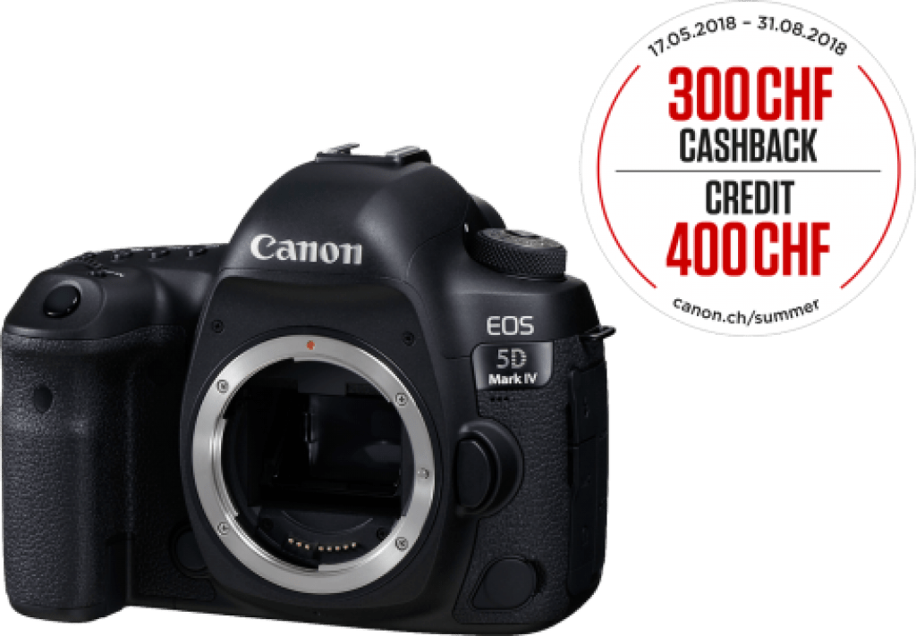 Bei brack gibt’s die Canon EOS 5D Mark IV gerade noch für CHF 2’399.- Zudem erhält man auf die Kamera noch CHF 300.- Cashback oder CHF 400.- Kredit (Canon Cashback und Kredit Infos) Mit dem Cashback und dem game.brack.ch Gutschein bezahlt man im Total also sogar nur CHF 2’089.- Lest euch aber unbedingt die Cashback - Bedingungen vor dem Kauf gut durch.