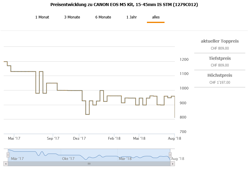 Brack hat gerade die CANON EOS M5 im Kit mit 15-45mm IS STM Objektiv in Aktion für 809.- CHF.