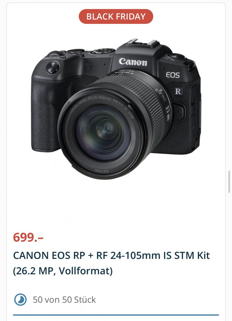 Bei Microspot gibt es die Einsteiger Vollformat Kamera Canon EOS RP im Kit für 699 CHF.