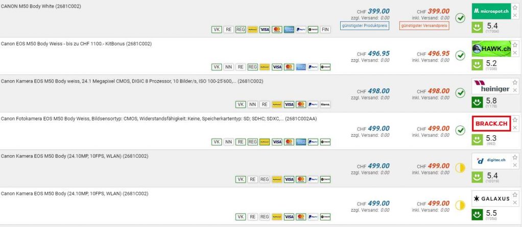 Bei Microspot gibt es die CANON M50 Body White für den neuen Bestpreis von CHF 399.-. Der vorherige Bestpreis war CHF 425.50. Der zweitbeste Preis beträgt CHF 496.95.