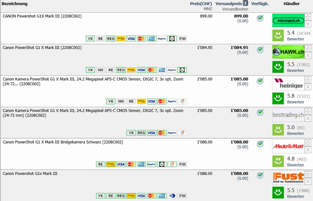 Bei microspot gibt es aktuell die CANON PowerShot G1 X Mark III für 899.- CHF.