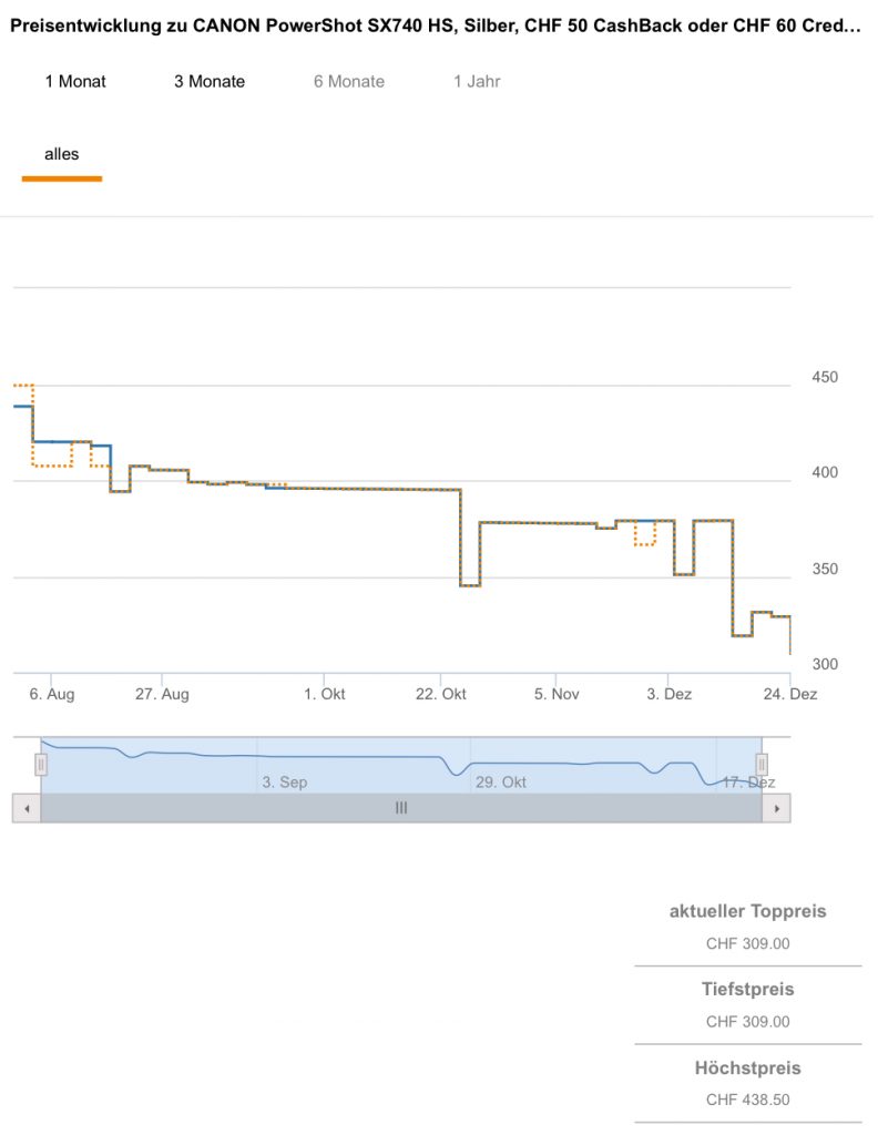 Bestprice bislang waren 319.- CHF, der zweitbeste Preis liegt aktuell bei 329.- CHF.