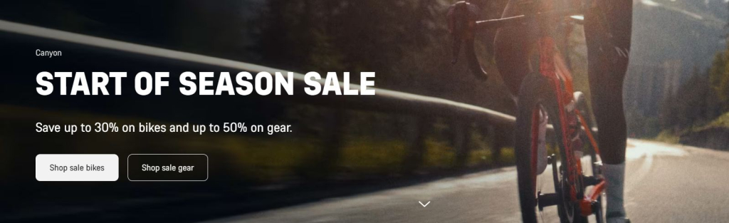 Nachdem dem 48h Flash Sale gibt es jetzt noch einmal die Möglichkeit bei Canyon diverse Bikes und Zubehör zu attraktiven Preisen zu ergattern. Wie lange der Deal gültig ist, konnte ich nicht sehen.
