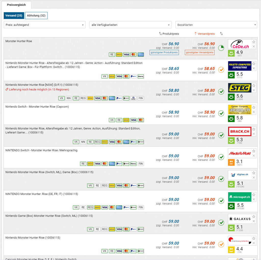 Das neue Monster Hunter Rise auf der Nintendo Switch lässt sich mit einem kleinen Trick nochmals etwas günstiger ergattern. Die Aktion in Kombination mit dem Newslettergutschein ergibt einen Preis von CHF 49.90. Das Angebot gilt noch bis zum 19.04.2021. Das Spiel ist bei mir bereits unterwegs, melde mich dann mit einem Update zum ersten Eindruck (als Monster Hunter Fan wohl eher positiv 😛 ).