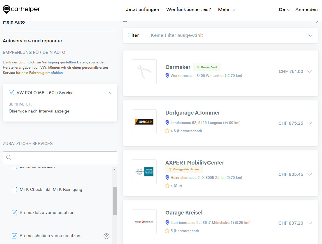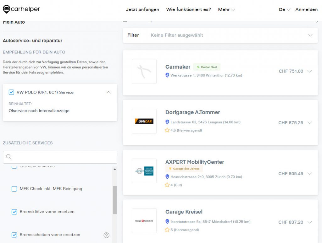 Kein wirklicher Deal, aber eine attraktive Vergleichsplattform für den Auto Service, sprich toppreise.ch aber für Autos 🙂