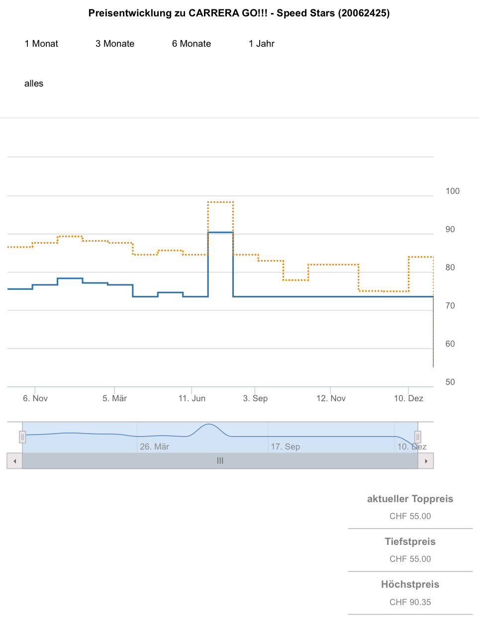 Gemäss toppreise war der bestprice bislang bei 74.90 CHF, der zweitbeste Preis liegt aktuell bei 83.90 CHF.