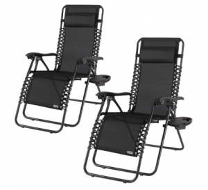 Casaria Gartenstuhl 2er-Set Schwarz klappbar mit Kopfstütze, Tischchen & Getränkehalter bei DeubaXXL inkl. Lieferung