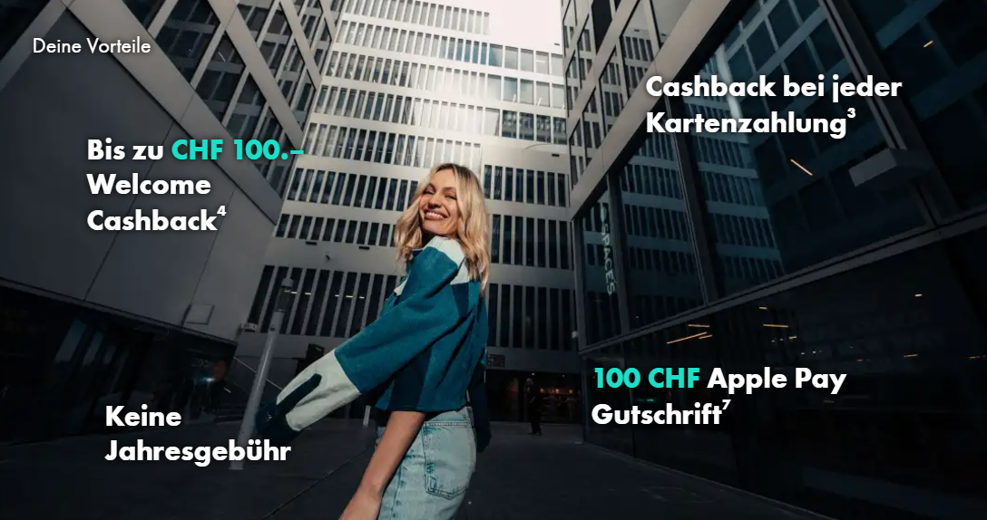 Den meisten dürfte der Deal bereits bekannt sein, dennoch hier nochmal für die Neu-Schnäppchenjäger: Bei Cashback Cards könnt ihr euch eine gratis Kreditkarte mit attraktiven Shopping-Benefits holen! Derzeit läuft auch eine Promotion, bei welcher Neukunden bei einer Zahlung mit Apple Pay einen Startbonus von 100 Franken kriegen können. Beachtet allerdings, dass die Zahlung innert 3 Monate nach Kartenerhalt zu erolgen hat. Ausserdem gibts wie immer auch während den ersten 3 Monaten 5% anstatt 1% Cashback, bis zu einem Cashback-Betrag von 100 Franken.