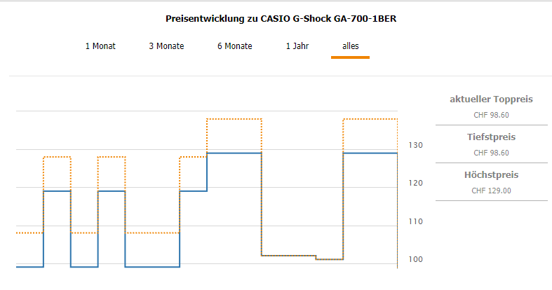 Die Uhr gab es bis jetzt noch nie unter 108 CHF Versandpreis. Bei digitec jetzt für 98.60 CHF. Die Uhr war meiner Meinung nach schon immer in diesem Preissegment, viel günstiger wird sie wohl nicht werden…