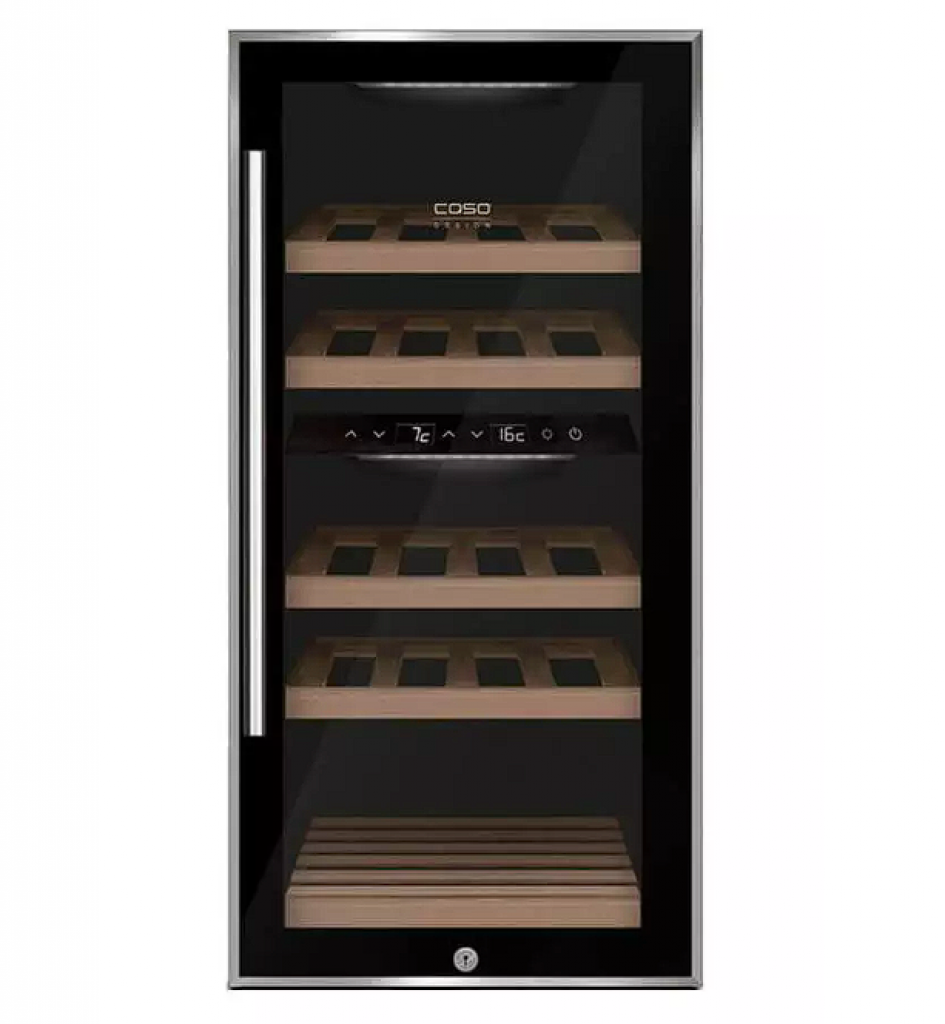 - Zwei getrennte Temperaturzonen für Weiss- und Rotwein, einzeln regelbar per Sensor-Touch