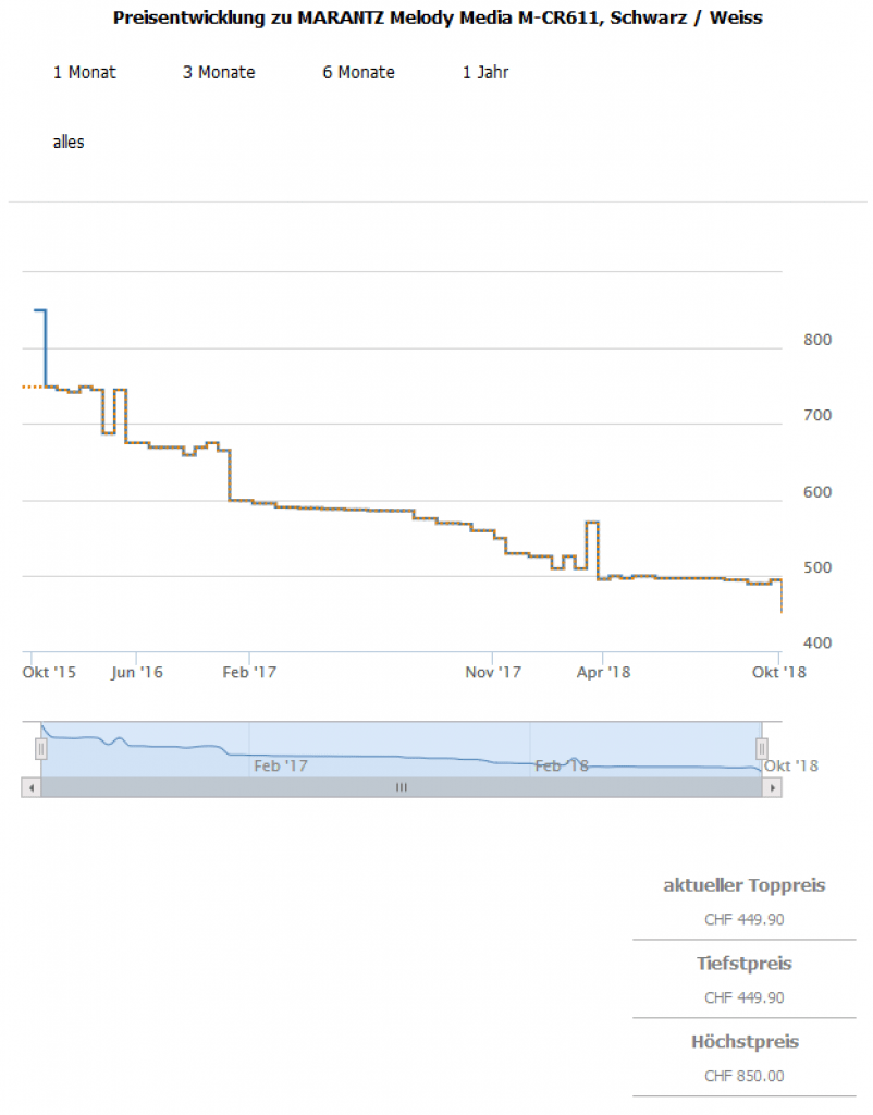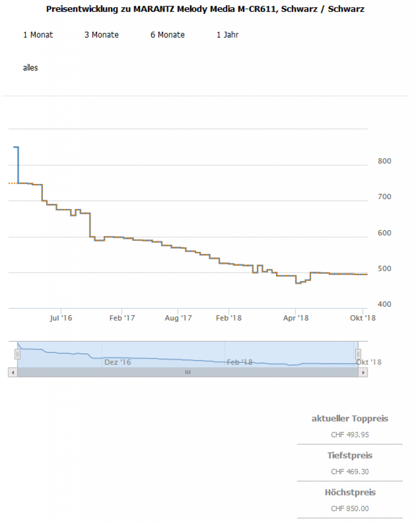 Gemäss toppreise war der best price über alle Farben bislang bei 469.30 CHF, der zweitbeste Preis sind aktuell 493.90 CHF.