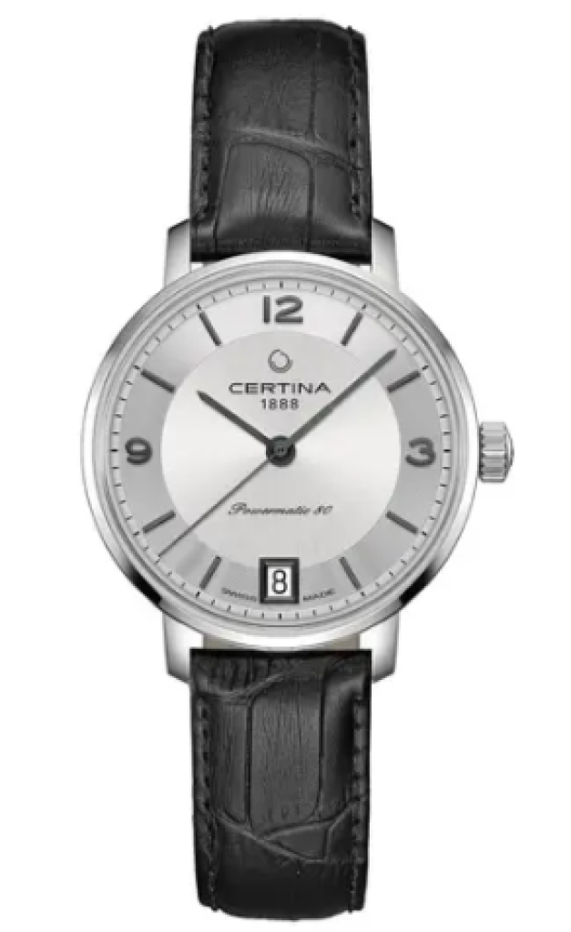 Die Certina «DS Caimano» ist eine exquisite Damenarmbanduhr, die durch ihre perfekte Kombination aus Eleganz und Funktionalität besticht. Mit einem präzisen Automatik-Uhrwerk ausgestattet, bietet diese Uhr eine beeindruckende Gangreserve von 80 Stunden. Das kratzfeste Saphirglas schützt das stilvolle silberne Ziffernblatt, das mit arabischen Indizes versehen ist. Das Edelstahlgehäuse mit einem Durchmesser von 31 mm und einer Höhe von 9 mm verleiht der Uhr eine zeitlose Ästhetik. Der klassische Dorn-Verschluss aus Leder sorgt für angenehmen Tragekomfort. Dank einer Wasserdichte von 100 Metern ist die Uhr ideal für Schwimmen, Duschen und Schnorcheln geeignet. Als Swiss Made Produkt garantiert sie höchste Qualität und Präzision.