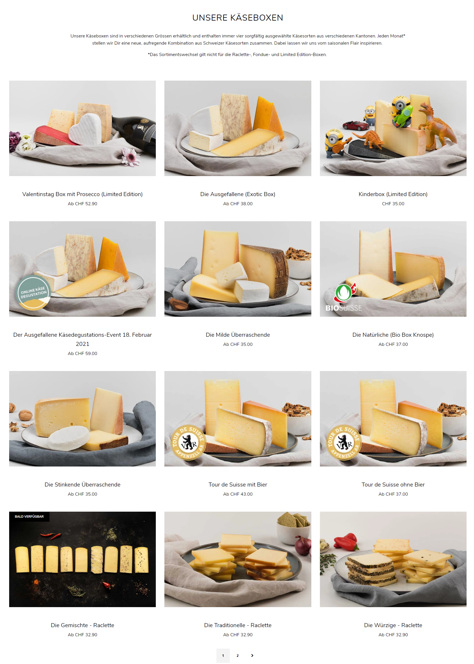 Folgende Käseboxen gibt es aktuell (noch einige weitere auf Seite 2):