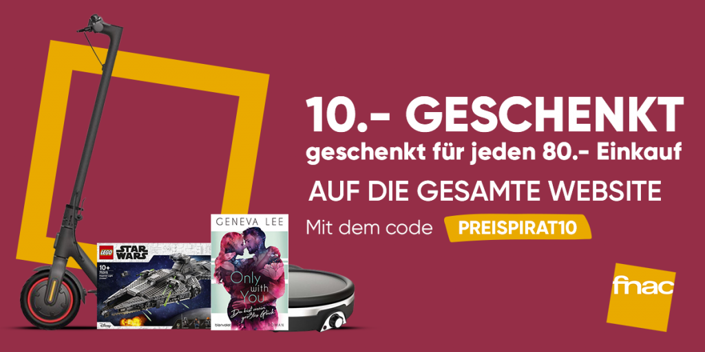Diese Woche haben wir einen exklusiven Preispirat Gutscheincode bei Fnac.ch für euch ergattert! Mit dem Code PREISPIRAT10 spart ihr CHF 10.- ab einem Einkauf von CHF 80.- oder mehr.