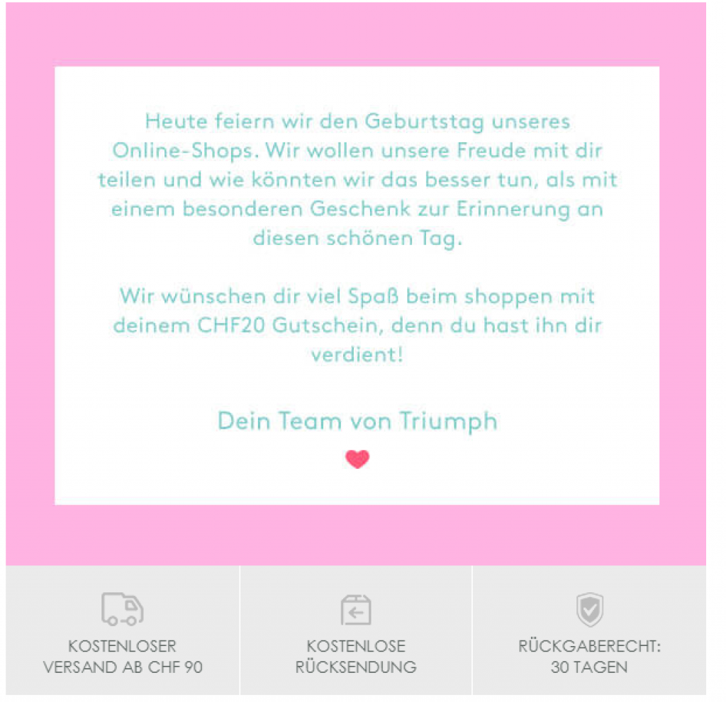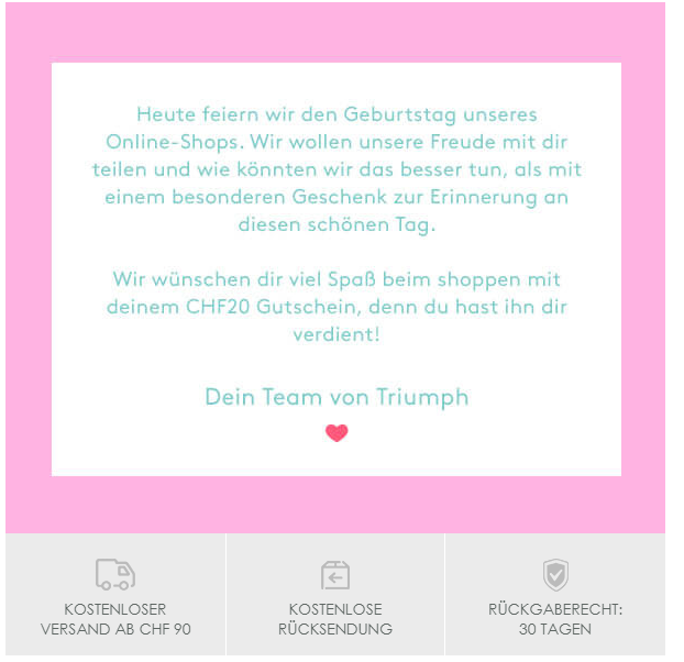 Bei Triumph gibt es wie jedes Jahr einen Geburtstags-Gutschein.