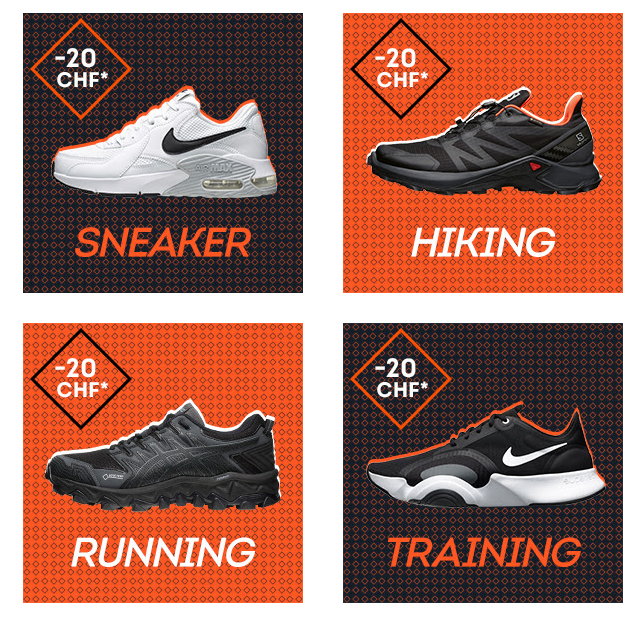 Bei SportScheck erhält man mit dem Code SCHUHE20X CHF 20.- Rabatt.