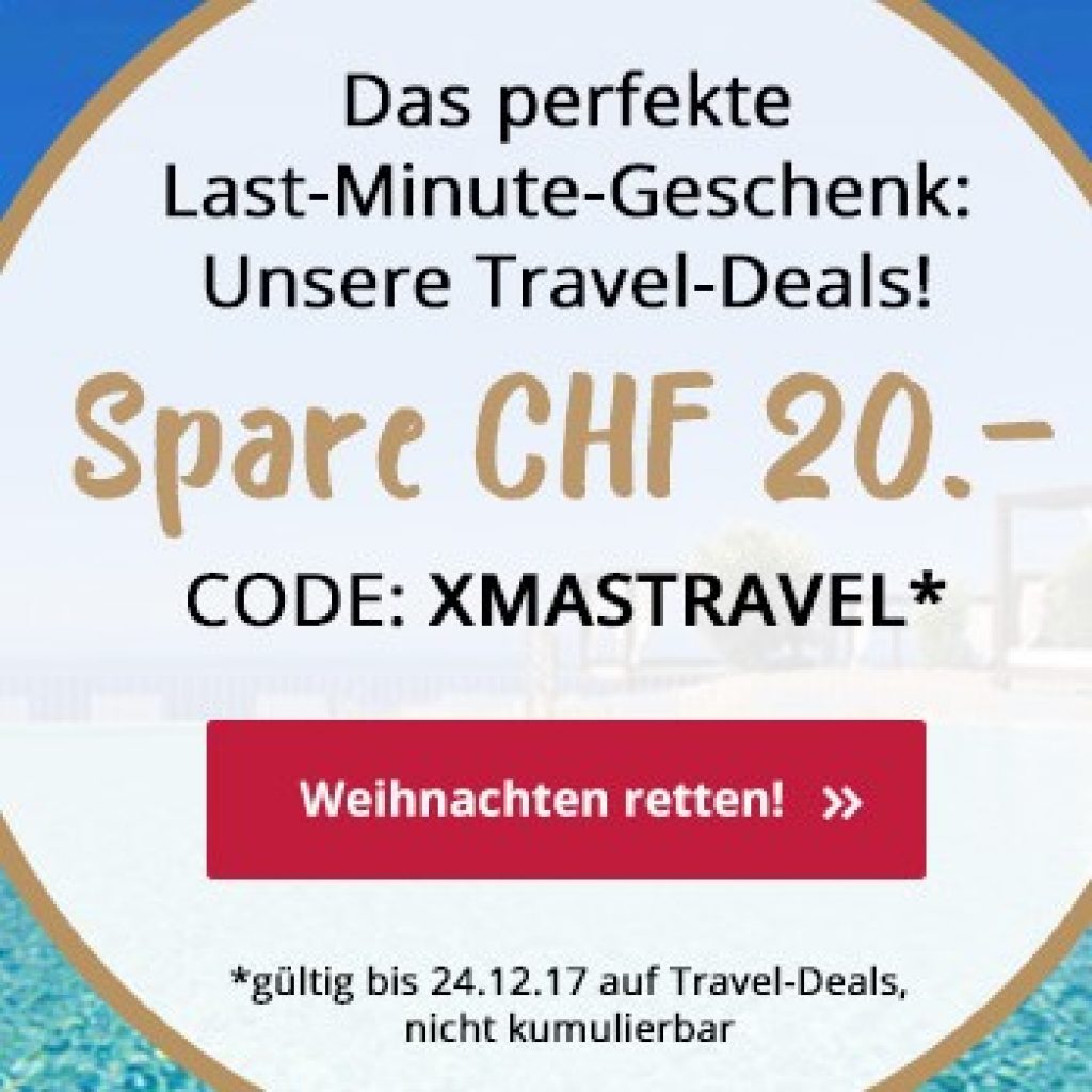 Um von dem Angebot zu profitieren, musst du den Code „XMASCITY“ bei einem City-Deal und „XMASTRAVEL“ bei einem Travel-Deal angeben. Die Angebote gelten jeweils allerdings nur bis einschliesslich morgen am Heiligen Abend. Bei den City-Deals musst du zudem einen Warenwert von mindestens CHF 100.- erreichen – bei den Travel-Deals erreichst du diesen wohl ohnehin. Mit anderen Aktionen lassen sich beide Angebote allerdings nicht kumulieren.