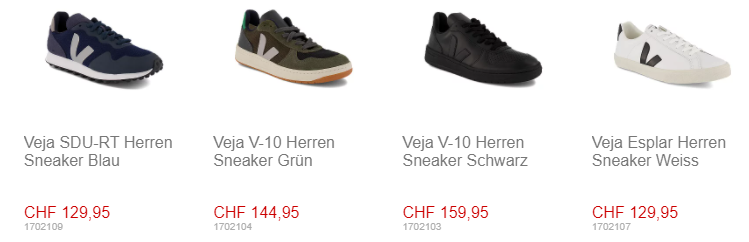 Die Verja Herren Sneaker kosten Beispielsweise dann nur noch CHF 139.90. Bei rrrevolve kosten diese Schuhe CHF 159.90.