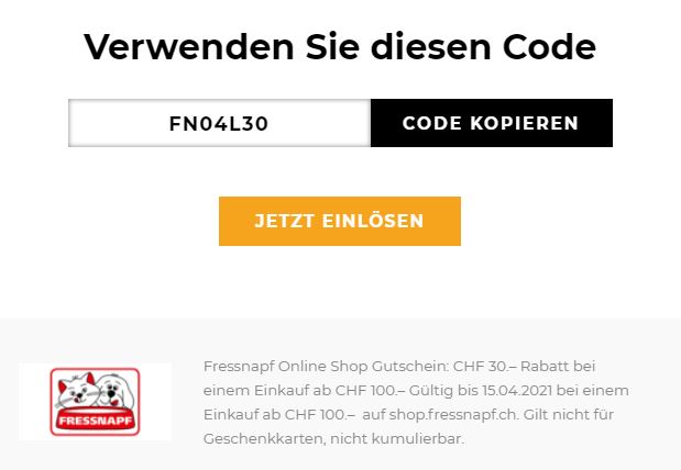 Bei Fressnapf erhält man bis zum 15.04. CHF 30.- ab CHF 100.- Rabatt.