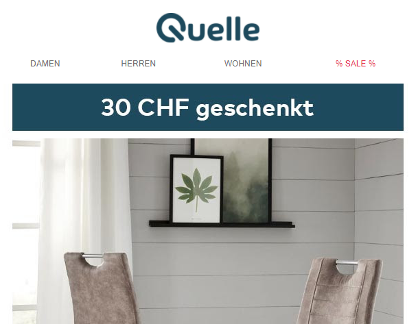 CHF 30.- ab CHF 90.- Rabatt oder 40 % auf Mode bei Quelle (bis 13.02.)