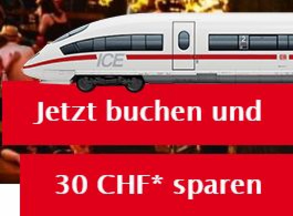 Im Rahmen der Kampagne „Einsteigen und Auskundschaften - den Sommer in Deutschland geniessen“ erhalten Bahn-Reisende aus der Schweiz bei einer Buchung einen Rabatt von 30 Franken. Aktuell bestehen zwischen den beiden Ländern, in Kooperation mit der Deutschen Bahn, täglich über 40 Direktverbindungen und zahlreiche einfache Umsteigeverbindungen.