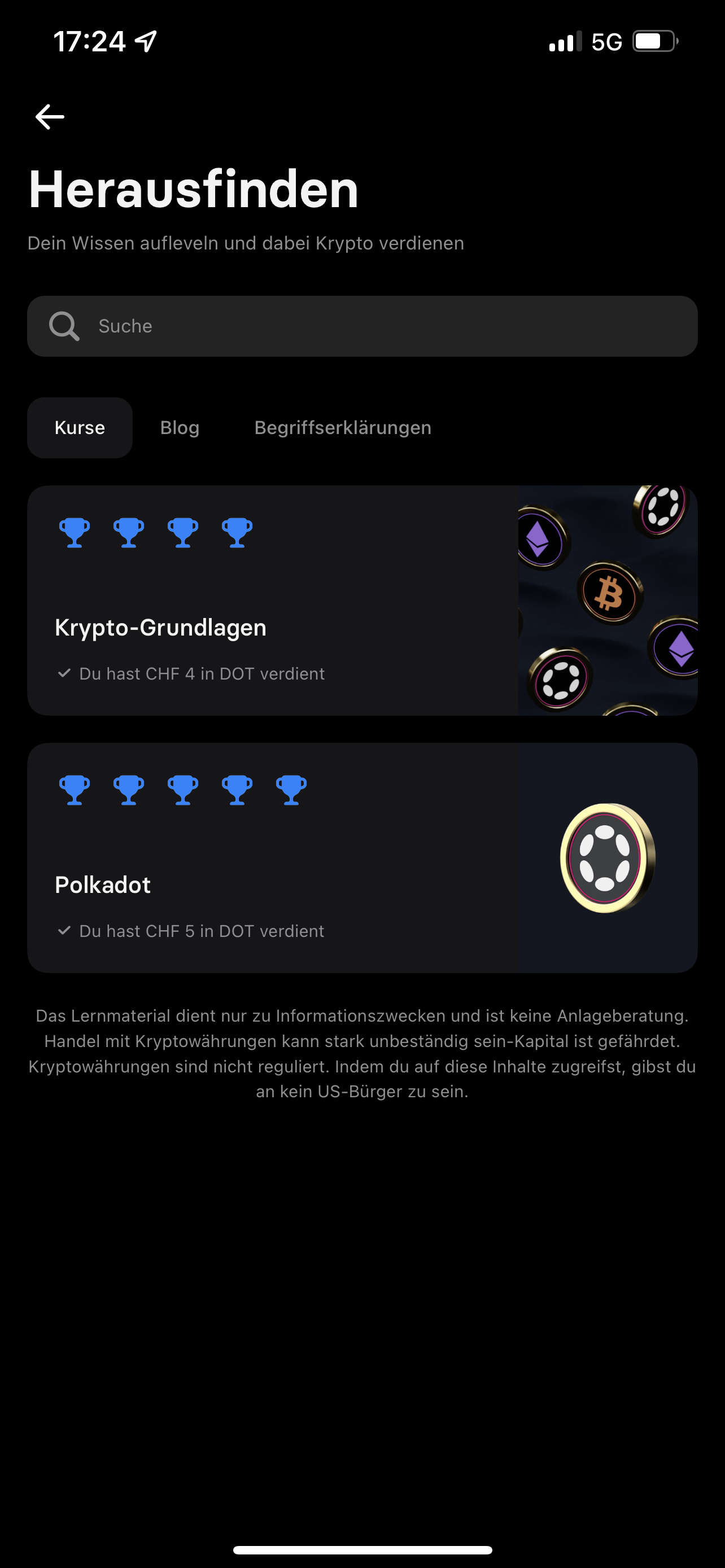In der Revolut App kann man aktuell ein ganz interessantes Quiz lösen (ist wirklich gut gemacht, kann jedem empfehlen dieses kurz anzuschauen). Zu gewinnen gibt es für jede korrekte Antwort $DOT im Wert von CHF 1.-. Ihr könnt diese nachher direkt verkaufen und die erhaltenen CHF ausgeben, falls gewünscht. Das Quiz ist nur in der neusten Version der App verfügbar, dafür in den Tab „Krypto“. Wer noch kein Revolut hat, kann ich dies nur wärmstens empfehlen, so ziemlich die beste FinTech App in Europa!
