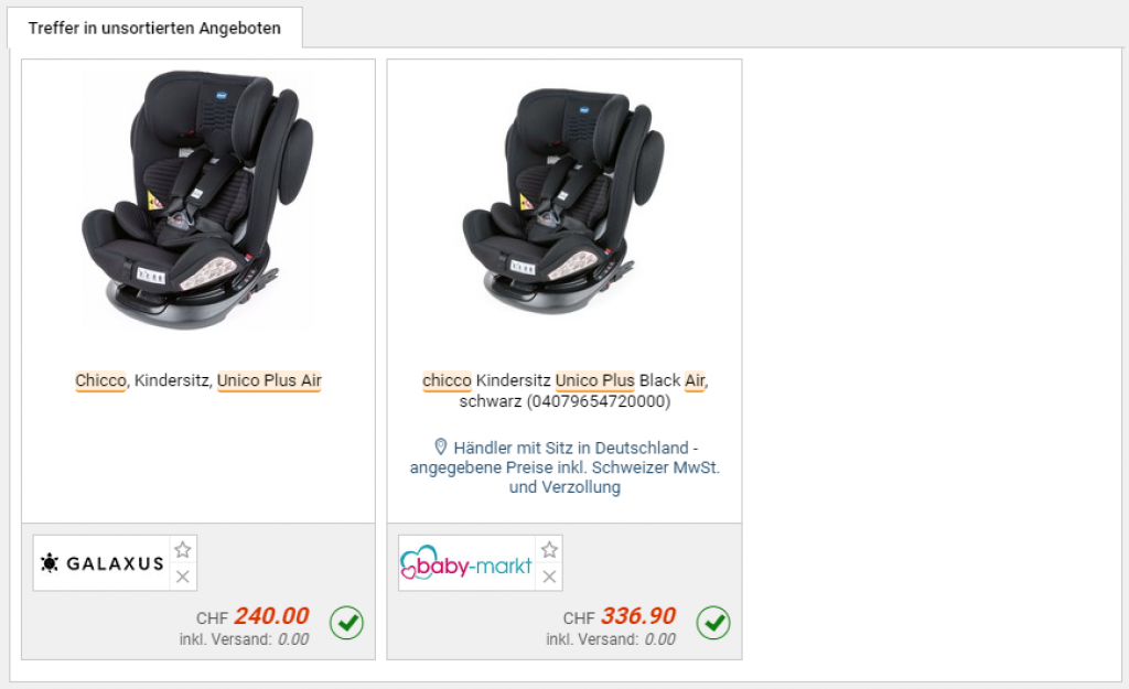 Bei nettoshop gibts derzeit den Autokindersitz Chicco Unico Plus Air für Babies zum Aktionspreis von 199 Franken. Laut toppreise/Google Shopping liegt der Vergleichspreis bei 240 Franken (Galaxus). Wenn ihr den Warenkorb auf 200 Franken auffüllt, z.B. mit diesem Filter, könnt ihr zudem noch den 20 Franken Bon anwenden und weiter sparen.