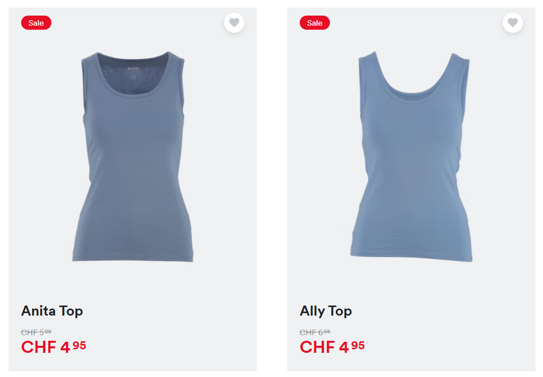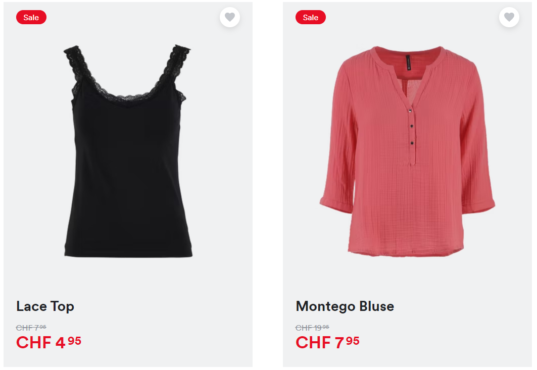 So könnt ihr euch zum Beispiel Tops für CHF 2.48 , Blusen für CHF 3.98 oder Shorts für CHF 6.48