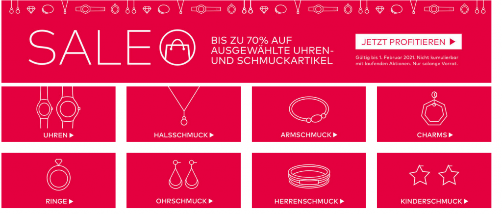 Bis zu 70% auf ausgewählte Uhren und Schmuck.